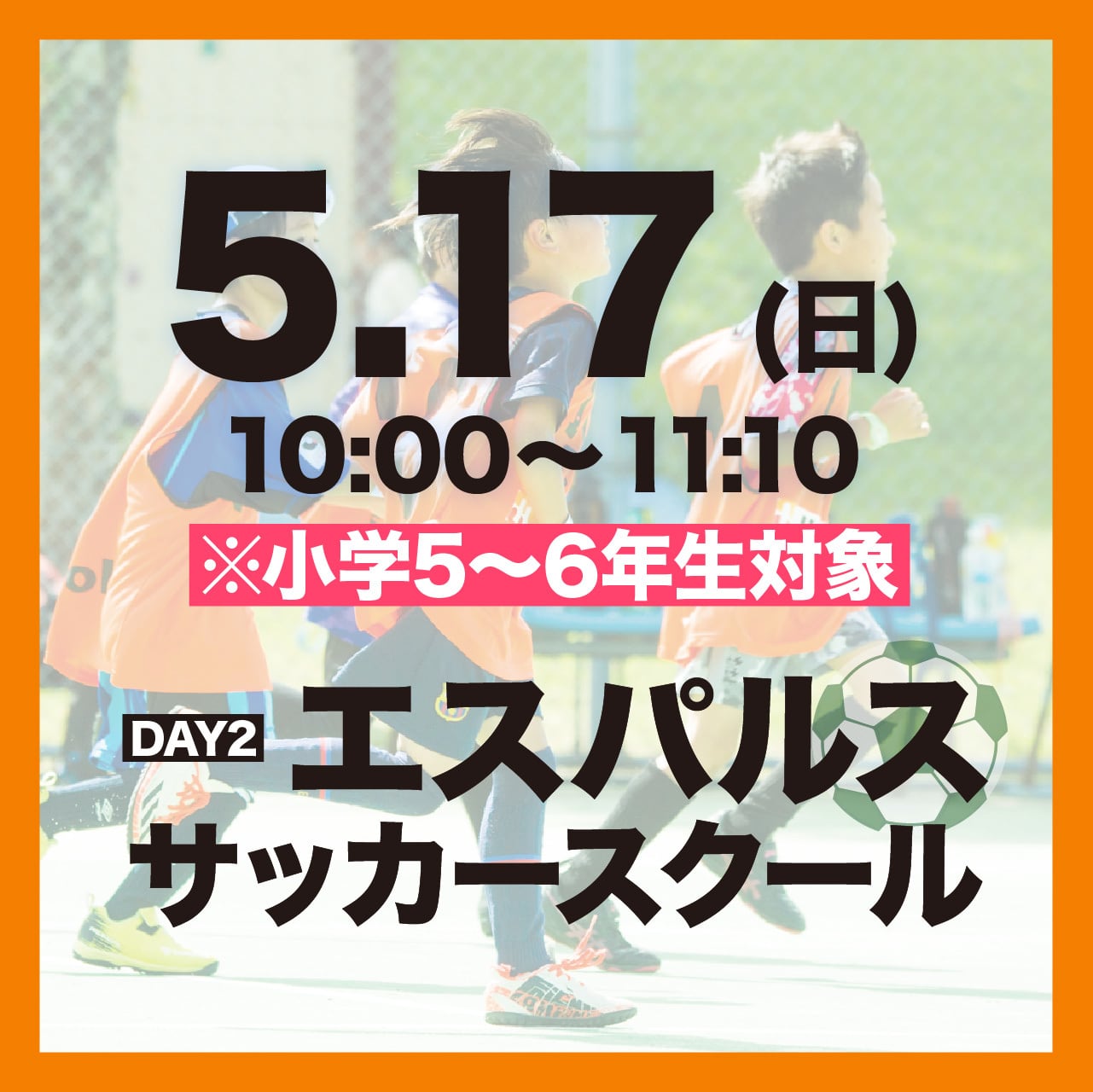 【5/17(日)10:00-11:10】DAY2 – エスパルス・サッカースクール ※小学5〜6年生対象
