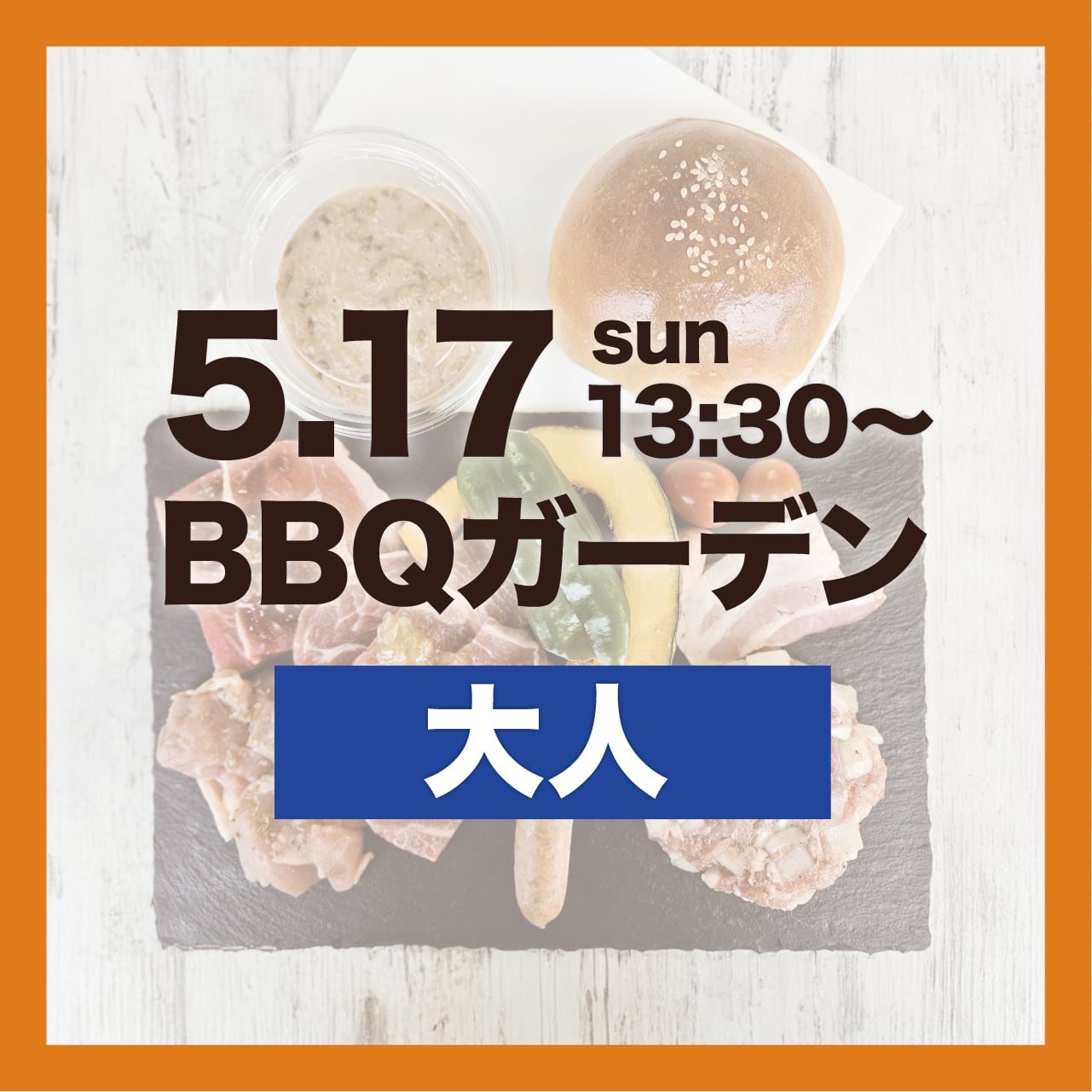 ・お子様の分も合わせてご注文の場合は、別途《【5/17(日)13:30-15:00】BBQガーデン/子供》より必要人数分をお買い求めください。